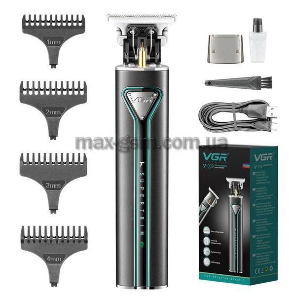Тример VGR V-009 GREEN, TURBO-режим, 4 насадки, LED підсвічування