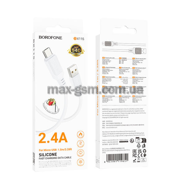 USB кабель Borofone BX115 MicroUSB white