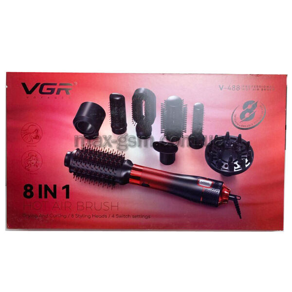 Фен-щітка-стайлер VGR V-488, змінні насадки 8шт, інструкція англійською мовою, упаковка